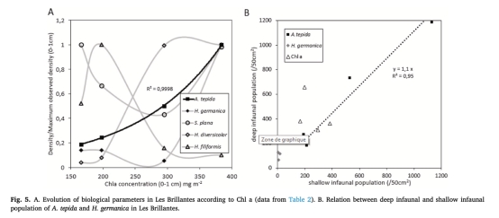 意義:葉綠素a濃度與A. tepida密度顯著正相關(guān)(R2=0.95,圖5A),證實食物數(shù)量(非質(zhì)量)是其密度主控因子。
