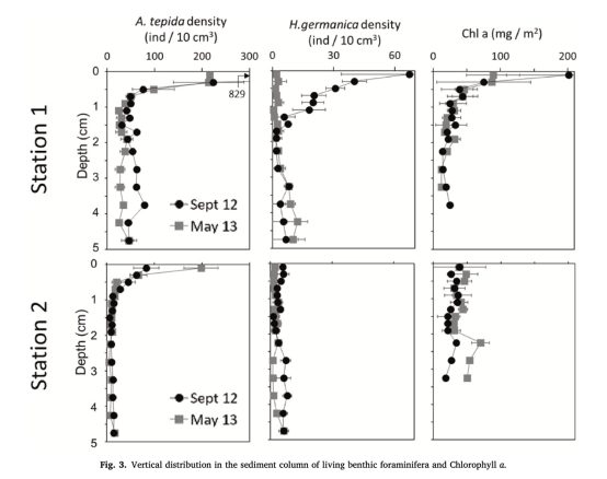 有孔蟲密度與垂直分布: