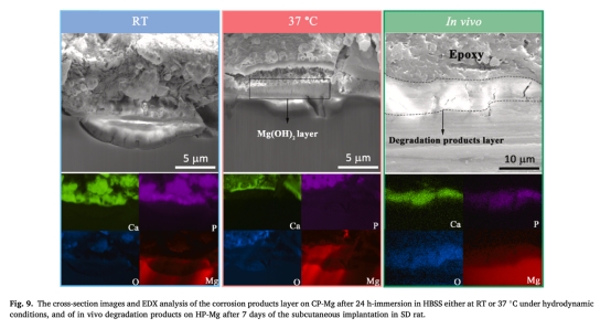 ? 意義:證實(shí)37°C形成致密Ca-P外層/厚Mg(OH)?內(nèi)層的雙層結(jié)構(gòu),解釋保護(hù)機(jī)制