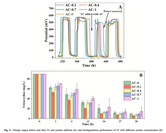 醋酸鹽在生物電化學(xué)系統(tǒng)中刺激四環(huán)素生物降解途徑