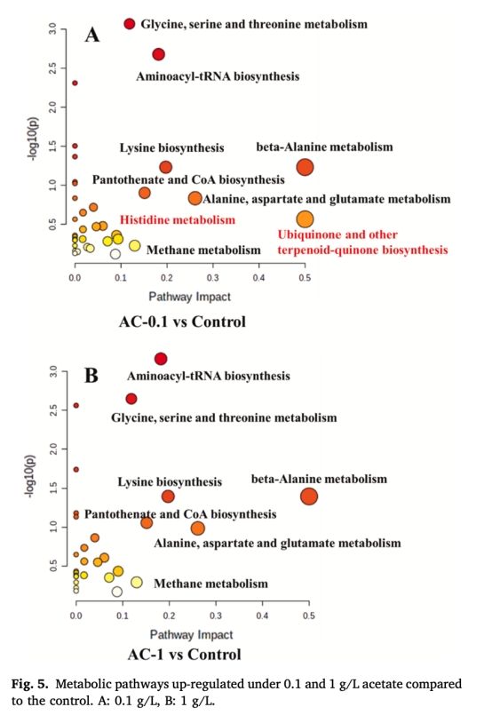 ? 數(shù)據(jù):AC-0.1顯著上調(diào)泛醌/萜醌生物合成(ubiquinone biosynthesis)和組氨酸代謝(histidine metabolism),AC-1中這兩條通路被抑制。