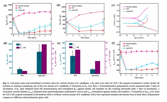 ? 數據:ΔmtrCBA的Ret值比野生型高200%,腐蝕電流密度降低50%