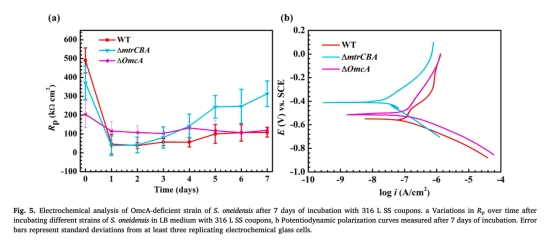 2. 解釋腐蝕機制時空特性:好氧環境中的厭氧微區使S. oneidensis表達厭氧呼吸通路(如MtrCBA),實現電子直接攝取;