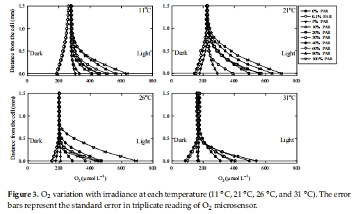 數據來源:不同溫度/光照下MWI的氧氣剖面(圖3)。