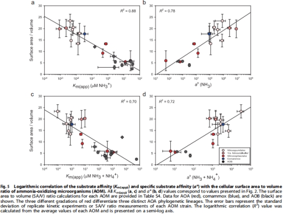 高親和力組(Km(app)≤0.025 μM):Nitrosopumilales(如海洋菌N. maritimus);