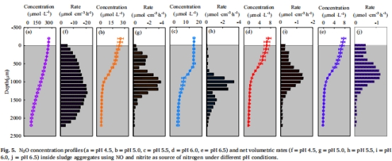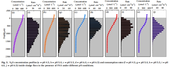 抑制機制:微電極分析表明,H?(氫離子)是N?O還原酶(NOS)的真實抑制劑,而非游離亞硝酸(FNA);同時低pH促進NOR活性,增加N?O生成。
