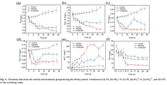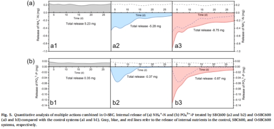 研究意義:證實O-SBC通過物理阻隔、吸附與ONB釋放三重作用逆轉沉積物營養釋放。