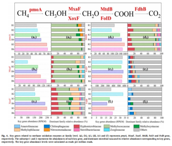 好氧層:富集好氧甲烷氧化菌(Methylococcaceae),完成CH?氧化(圖2, 圖6)。