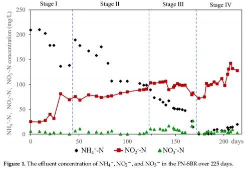 本研究構建了處理有機廢水的部分亞硝化(PN)序批式反應器(PN-SBR),運行225天后實現穩定PN狀態: