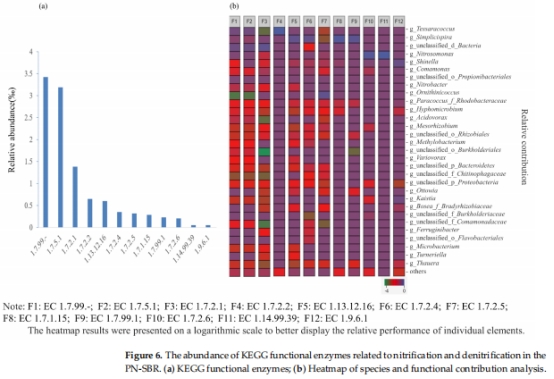 羥胺脫氫酶(hao)主要源于Nitrosomonas(77.8%)和Comamonas(5.5%)(圖6b)。