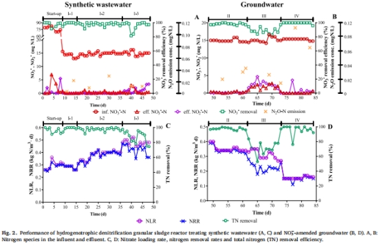 水質(zhì)影響:合成廢水(階段I)→ 硝酸鹽污染地下水(階段II-IV)。