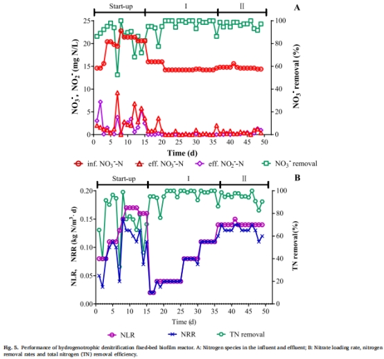 性能對比:平行運行固定床生物膜反應器(圖1B,載體為聚氨酯海綿),比較NRR與穩(wěn)定性。