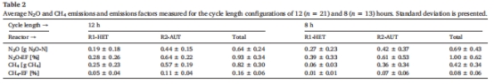N?O排放因子:0.93±0.34%(12小時(shí)周期)、1.00±0.62%(8小時(shí)周期)。