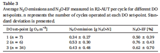 DO設(shè)定值(1/2/3 g O?/m3)對(duì)N?O-EF無(wú)顯著影響(0.50–0.76%)。