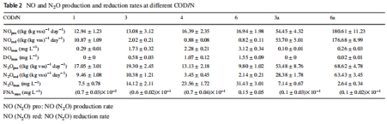 還原路徑:Nor電子消耗速率從0.78 mol/g VSS/d(COD/N=3)降至0.06 mol/g VSS/d(COD/N=6)。