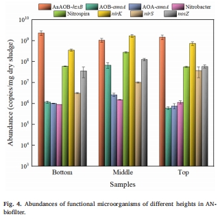 qPCR定量功能基因(hzsB, amoA, nirK, nirS等),明確Anammox菌、硝化菌及反硝化菌的豐度分布(圖4)。