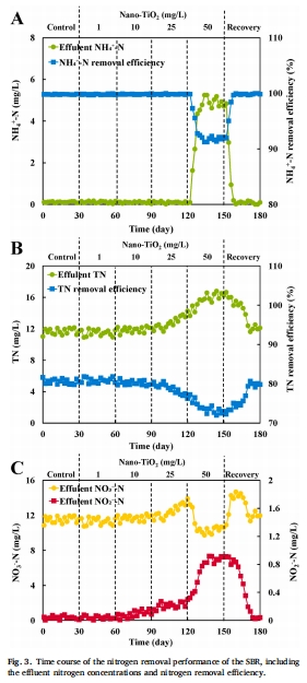 恢復潛力:停用nano-TiO?后30天,脫氮效率與N?O排放完全恢復(圖3-4)。
