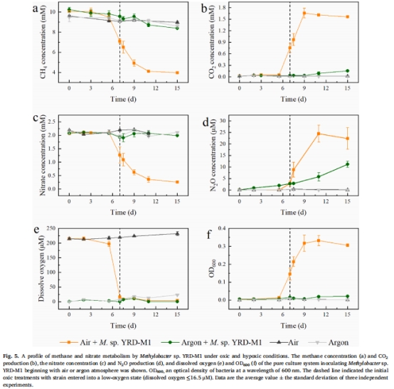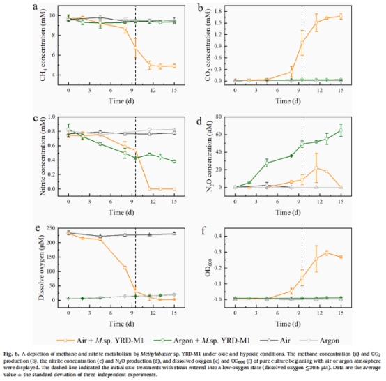 菌株YRD-M1在缺氧條件下消耗1.84 mM CH?,產(chǎn)生49.0 μM N?O(圖6)。