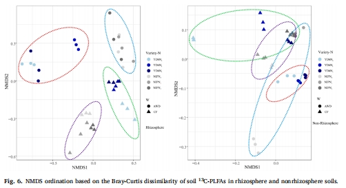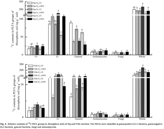 AWD增加革蘭氏陰性菌(如16:1ω7c)和真菌(18:2ω6c)豐度(13C-PLFA)。