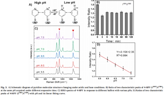 修飾4-MPY作為pH響應(yīng)分子,通過Ag-S鍵固定(圖1D)。
