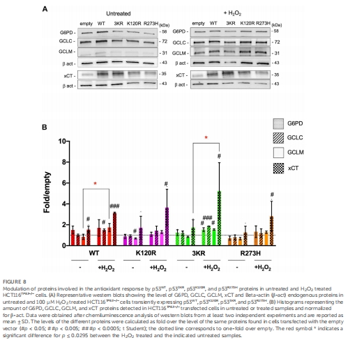 xCT蛋白在p53K120R細胞中表達增加(1.5倍),但不足以抵消脂質過氧化(圖8B)。