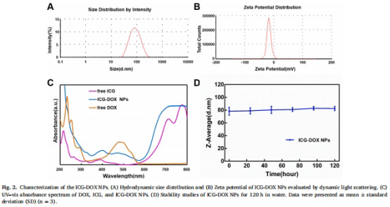 ICG-DOX NPs:通過自組裝形成納米粒(粒徑77nm,圖2A)。