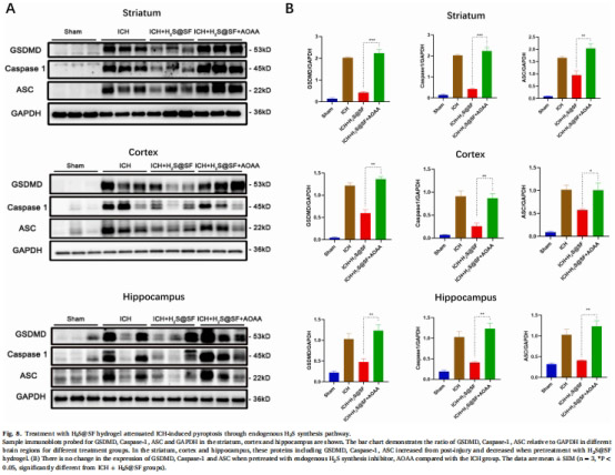 結(jié)果:AOAA(H?S合成抑制劑)完全阻斷H?S@SF的焦亡抑制效應(GSDMD表達恢復至ICH水平)。
