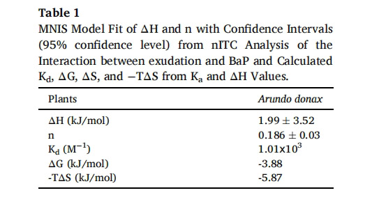 數(shù)據(jù)意義:表1顯示根分泌物與BaP結(jié)合常數(shù)(Kd=1.01×103 M?1)和負(fù)吉布斯自由能(ΔG=-3.88 kJ/mol),表明自發(fā)結(jié)合過(guò)程。這解釋了根分泌物通過(guò)降低界面張力增強(qiáng)BaP生物可利用性的機(jī)制,為啟動(dòng)效應(yīng)的非生物途徑提供量化證據(jù)。