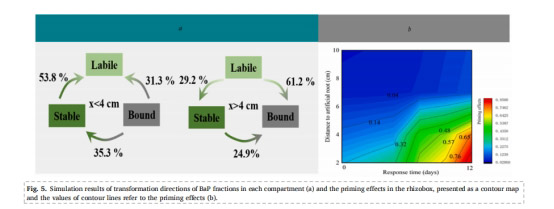 數(shù)據(jù)意義:圖5a顯示4cm內(nèi)53.8%穩(wěn)定吸附BaP轉(zhuǎn)化為易釋放相;圖5b用等高線圖展示啟動(dòng)效應(yīng)時(shí)空動(dòng)態(tài),證明其在BaP消散中的主導(dǎo)作用。這些數(shù)據(jù)整合了多機(jī)制貢獻(xiàn),為濕地源匯穩(wěn)定性管理提供預(yù)測(cè)工具。