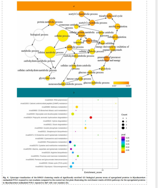 數(shù)據(jù)意義:圖4a-b顯示根分泌物上調(diào)微生物碳水化合物代謝和PAH降解通路(如mva00624),下調(diào)ABC轉(zhuǎn)運(yùn)蛋白通路。表明啟動(dòng)效應(yīng)通過(guò)共代謝增強(qiáng)BaP生物降解,量化了微生物響應(yīng)機(jī)制,為生物強(qiáng)化策略提供分子靶點(diǎn)。