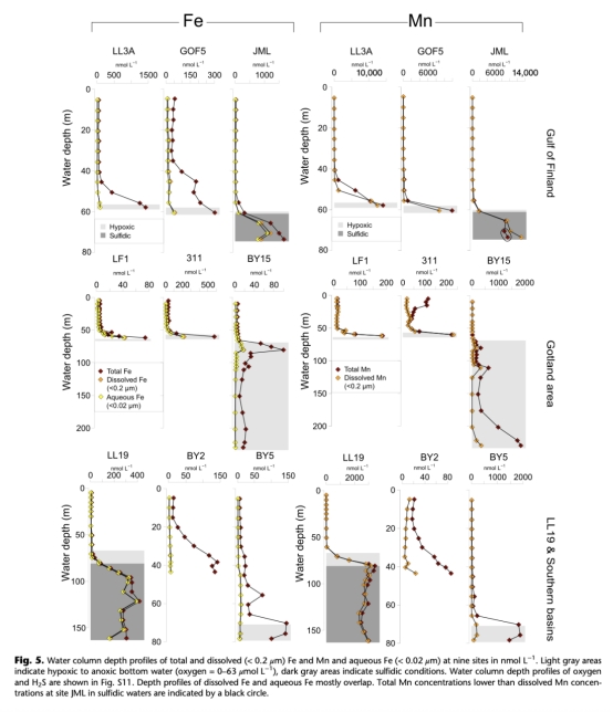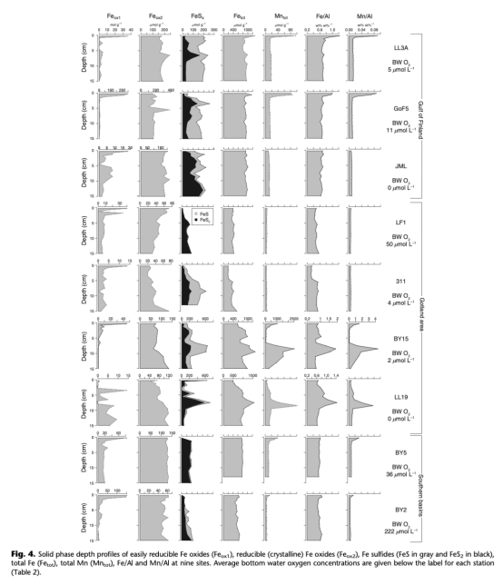 ? 數據:缺氧站位(如LL3A)孔隙水Fe/Mn富集(最高400μM),硫化站位(JML)Fe被固定