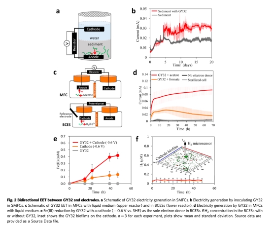 3. 雙向EET能力:GY32可作為電子供體(陽極產電)或受體(陰極還原金屬/氧氣),擴展其在自然和工程環境中的生態角色。