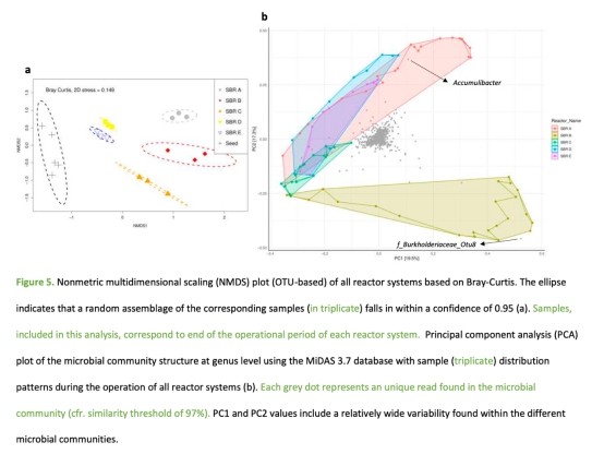 4. 微生物解析:qPCR定量Accumulibacter/Competibacter,16S rRNA測序分析群落結構(圖4-5)。