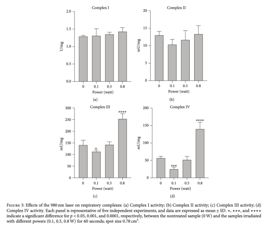 1. 靶向性調控:980nm激光特異性激活線粒體復合物III和IV,且存在功率依賴性"窗口效應"(0.8W最佳)。