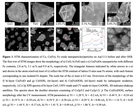? 利用STM表征納米顆粒形貌與Fe原子位置(圖1c-e),XPS驗證氧化態變化(圖1i)。