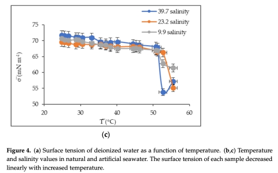 3. 表面張力分析:通過Wilhelmy板法(Krüss張力儀)測定溫度、鹽度和表面活性劑對表面張力的影響(圖4-5)。