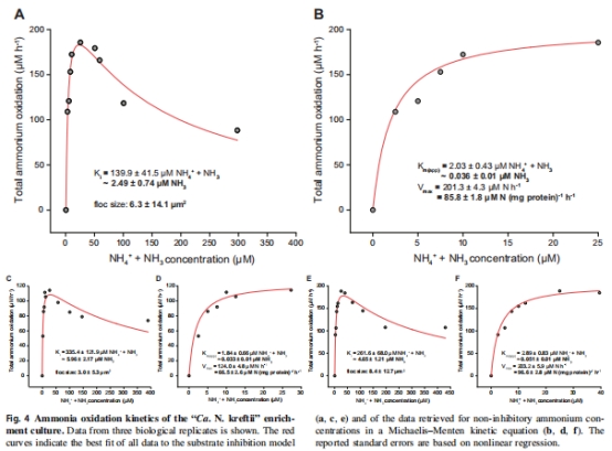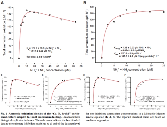 3. 氨氧化動(dòng)力學(xué)與銨抑制(圖4, 圖6)