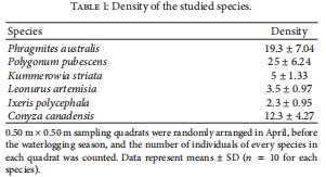 結果:亞優勢種(雞眼草、益母草、苦荬菜)定殖率>40%,優勢種(加拿大蓬)<20%