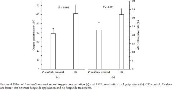 蘆葦移除對氧氣和AMF的影響(圖4)