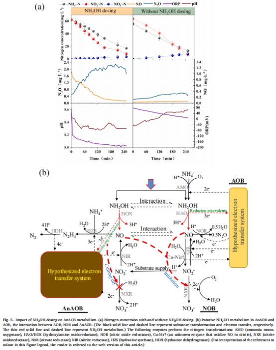 闡明羥胺作用機制:解析羥胺如何通過代謝中間體(如NO)抑制NOB,并促進AOB與AnAOB的協同作用。