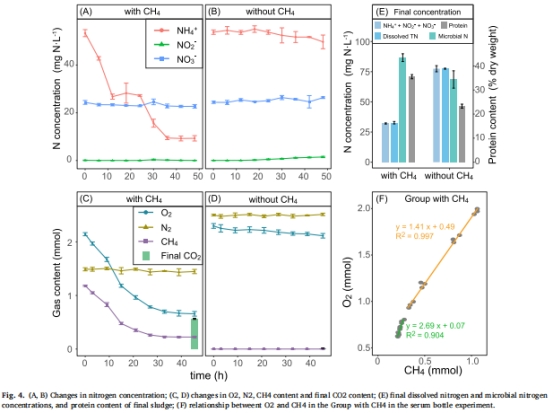 血清瓶驗證實驗:對比添加CH?組與無CH?組,證實MOB同化作用主導氨去除(圖4)。