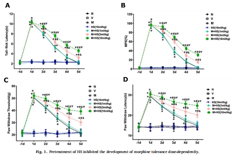 意義:首次證實(shí)HS劑量依賴性緩解嗎啡耐受,且單用HS不影響正常痛閾。