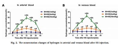 "動(dòng)脈血?dú)錆舛雀哂陟o脈血(圖2A vs. 2B),表明氫快速進(jìn)入組織發(fā)揮作用,與后續(xù)抗炎/抗氧化效應(yīng)時(shí)序吻合。"