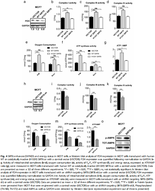 過表達/沉默SIRT6:檢測PDH活性、呼吸鏈復合物活性、ATP合成(圖3-4);