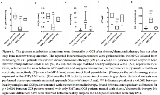 CCS中接受化療/放療者P/O值顯著降低,而接受骨髓移植者無此現(xiàn)象(圖4),明確損傷源于化療/放療而非癌癥本身。