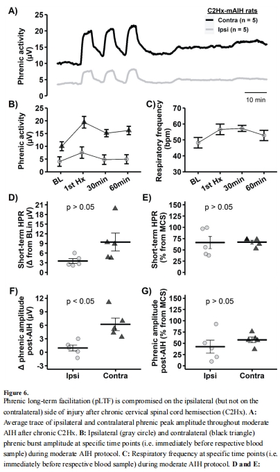 本研究探索頸髓損傷(C2Hx)對 膈肌長時程增強(pLTF) 的影響及其與脊髓組織氧壓(PtO?)的關系: