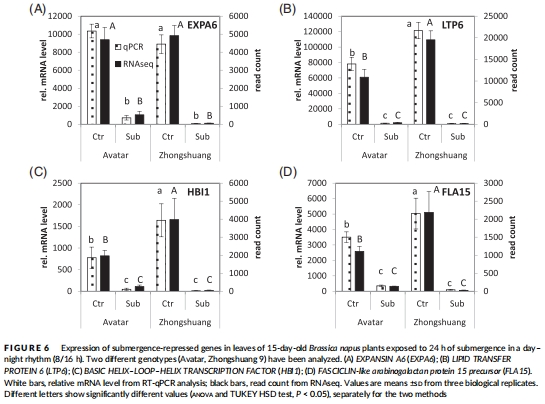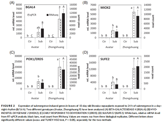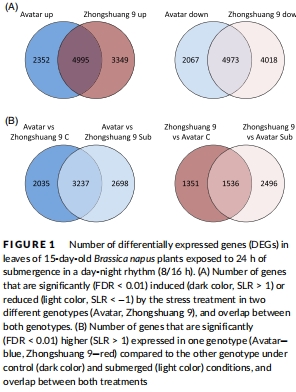 兩個甘藍型油菜品種的基因表達不同,但對淹沒的反應不同