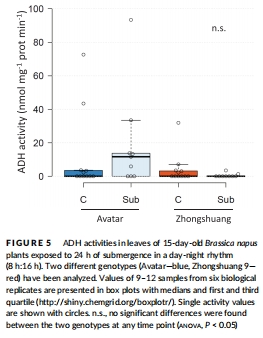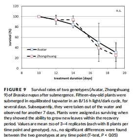 本研究首次在自然光暗周期下分析甘藍型油菜(Brassica napus)幼苗對完全淹水的響應**,比較歐洲雜交品種Avatar與亞洲耐澇品種Zhongshuang 9的差異: