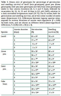 無氧環境:草豌豆恢復存活率24%,顯著高于蠶豆(6%)和豌豆(7%)(表3)。
