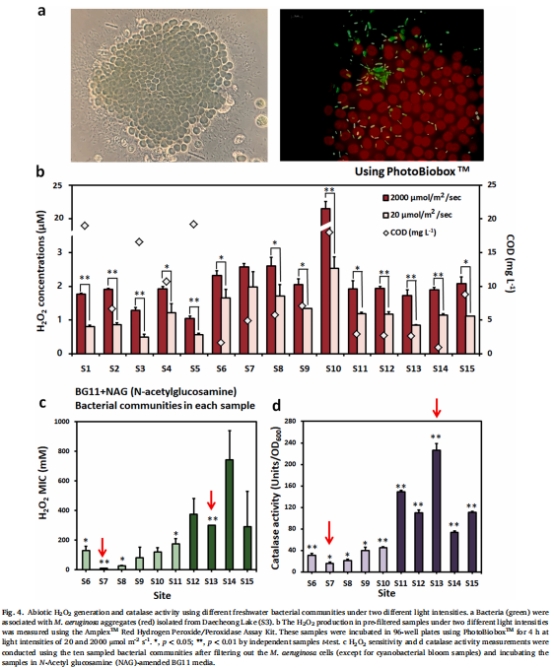 銅綠微囊藻的生存策略:依賴共生細(xì)菌(α-變形菌)的過氧化氫酶抵御H?O?脅迫(圖5-6)。